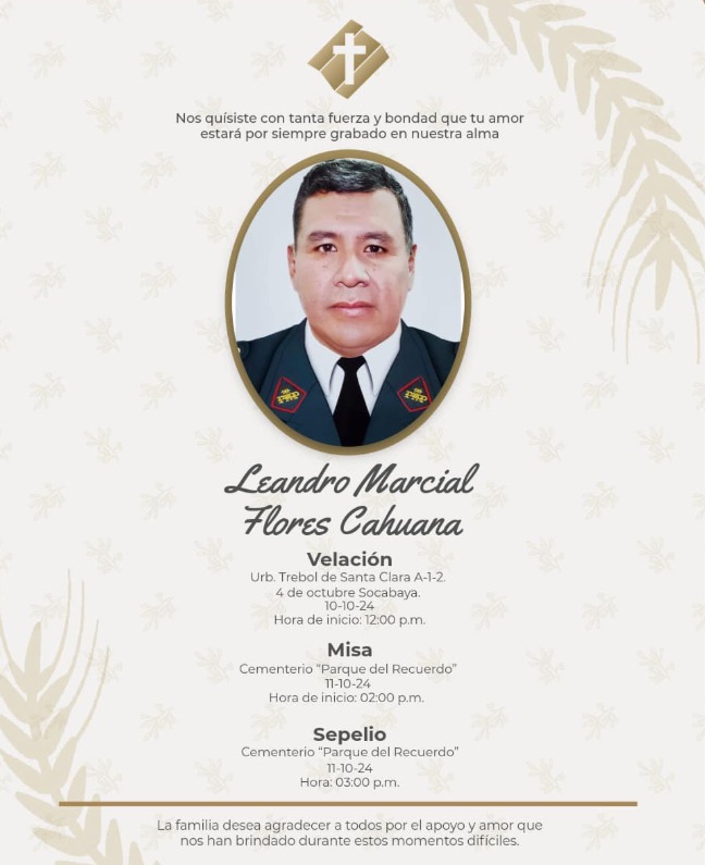 El suboficial Leandro Marcial Flores Cahuana no perdió su vida en una balacera persiguiendo delincuentes. Ni en ningún operativo salvando a un ciudadano del peligro. La perdió dando seguridad a una empresa privada en la región peruana de Arequipa. El 8 de octubre del 2024, mientras realizaba un patrullaje por las inmediaciones del proyecto minero Tía María, propiedad de Southern Copper Corporation (SCC), la camioneta en que se movilizaba junto a otro efectivo y un miembro de seguridad privada, se desbarrancó casi 100 metros por una densa neblina.