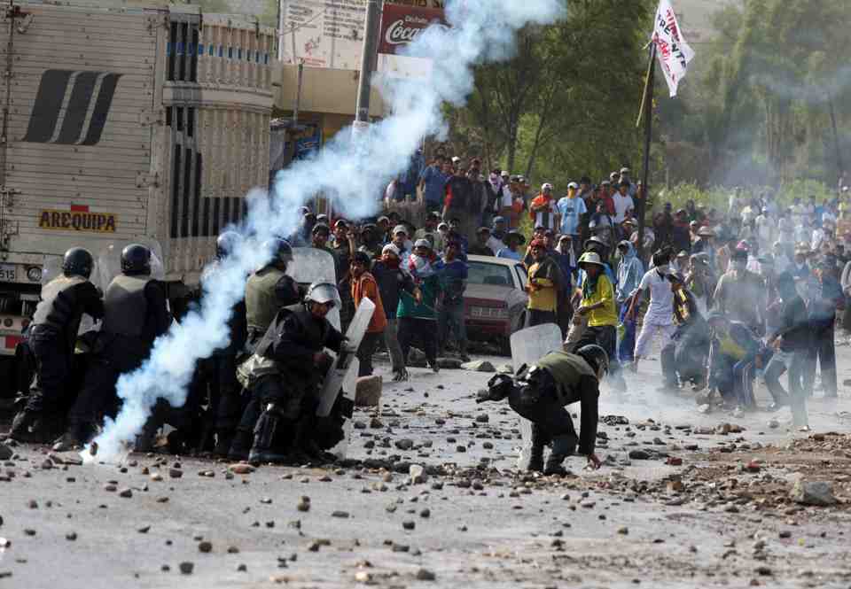 “Hay mucha desconfianza con la Policía. Estamos seguros que apoya a la empresa minera Southern”, sostiene Miguel Meza, uno de los voceros del valle de Tambo, una zona agrícola con 14 mil hectáreas de cultivo. La intensidad de sus protestas siempre fue escalada. En 2011 fue así y ni qué decir del 2015. Empezaban con marchas, que se convertían en paros y bloqueos, hasta que la olla de presión estallaba. En total el conflicto costó la vida de seis ciudadanos y un afectivo.